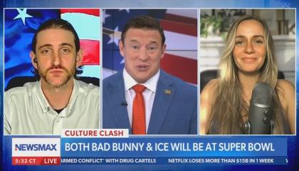 Newsmax guest on ICE agents at the Super Bowl: “I want to see ICE agents tackling performers and bringing them off the field. Send them to Uganda with Kilmar Abrego Garcia.” Video & Audio 10/03/25 9:07 AM EDT