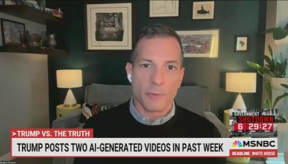 On Deadline: White House, Angelo Carusone discusses Trump sharing AI videos and how they provide a concise way to reinforce a narrative already percolating in right-wing media Video & Audio 09/30/25 6:55 PM EDT