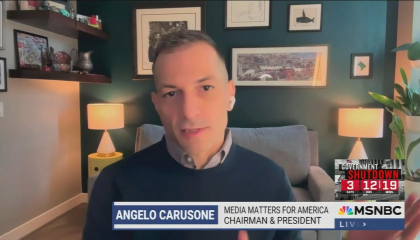 On MSNBC's Velshi, Angelo Carusone discusses how traditional right-wing media and far-right fringes have coalesced around the baseless claims about the government shutdown Video & Audio 10/06/25 11:21 AM EDT