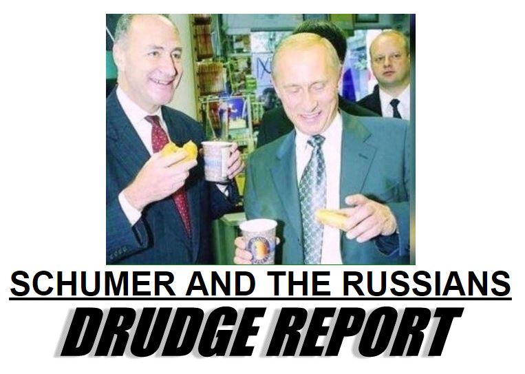 Drudge At 9:43 A.M. March 3: “SCHUMER AND THE RUSSIANS.” Drudge the next day posted the Schumer-Putin photo with the headline “SCHUMER AND THE RUSSIANS,” linking to the Gateway Pundit article.