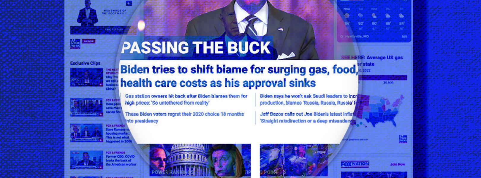 The headline for Fox’s homepage featured article also carried a sarcastic remark from right-wing talk show host Mark Zinno: “I thought it was Russia's fault.” On that subject, Fox has taken a “heads I win, tails you lose” approach to its propaganda campaign on the spike in gas prices set off by Russia’s invasion of Ukraine. From the very beginning of the war, the network initially attacked Biden for not immediately placing sanctions on Russian oil, then turned around and attacked him for sanctioning Russian oil and causing gas prices to rise. Ever since then, as more countries have imposed sanctions on Russian oil, the network continued to blame Biden for global market disruptions.