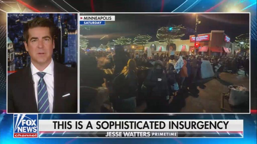 Fox host Jesse Watters condemned Gov. Tim Walz, telling viewers that he “has not made any effort to chill out his citizens” and has instead “been in open rebellion against the federal government” and “activated a Minnesota insurgency.”