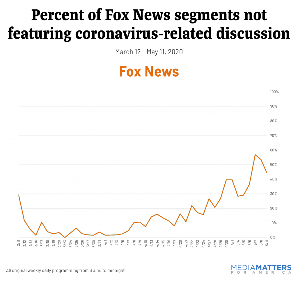 Fox’s coronavirus coverage has been extraordinarily problematic, with polling showing that the network has endangered its viewers, but the shift away from covering the story as Americans continue to die every day from COVID-19 is equally problematic.