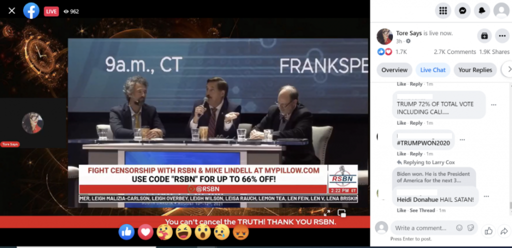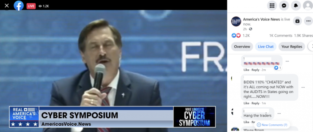 The misinformation gabfest is being aired by several right-wing news outlets on a range of platforms. Some of the websites, including YouTube and Facebook, have policies that do not allow election misinformation on their platform. The live streaming of the symposium apparently violates these policies, which are clearly not being followed.