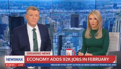 After dismal jobs report, Newsmax first says the US gained 92,000 jobs before correcting themselves and noting that many jobs were lost Video & Audio 03/06/26 9:14 AM EST