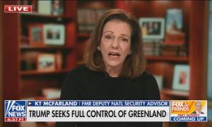 On Fox, Former Deputy National Security Adviser KT McFarland claims, “at the end of the day we're going to get control of Greenland” Video & Audio 01/15/26 9:44 AM EST