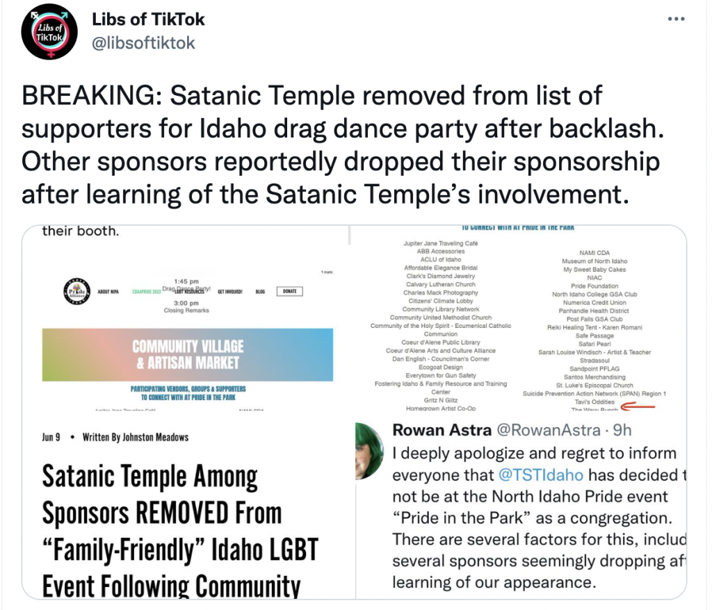 Raichik also tweeted about an event held over the weekend in Idaho called Pride in the Park.