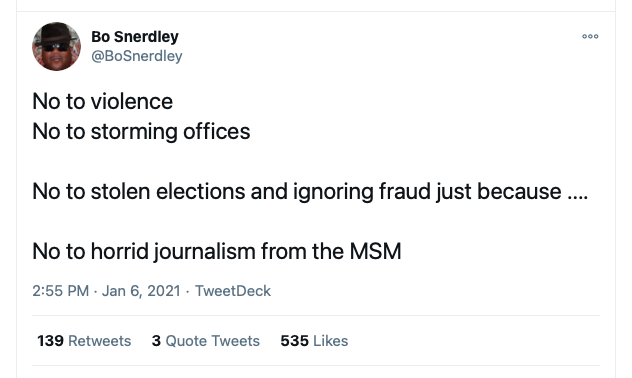 A substantial number of right-wing media figures tweeted in support of the insurrectionists, defending their actions and drawing false equivalences.